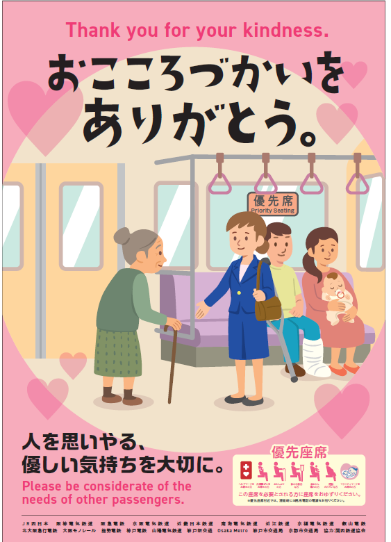 関西の鉄道事業者18社局による共同マナーキャンペーン「座席の座り方(優先座席)」を共通テーマとしてポスターを掲出します。