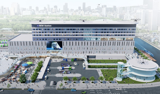 <新駅・駅ビル、駅前空間のデザインパース>